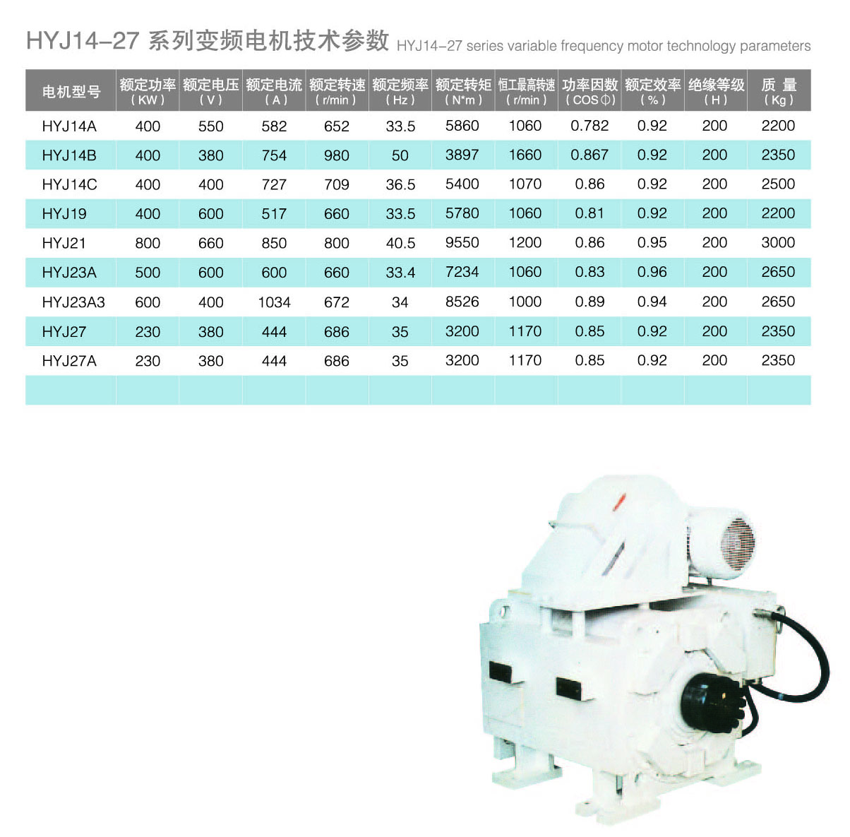 HYJ14-27系列变频电机技术参数